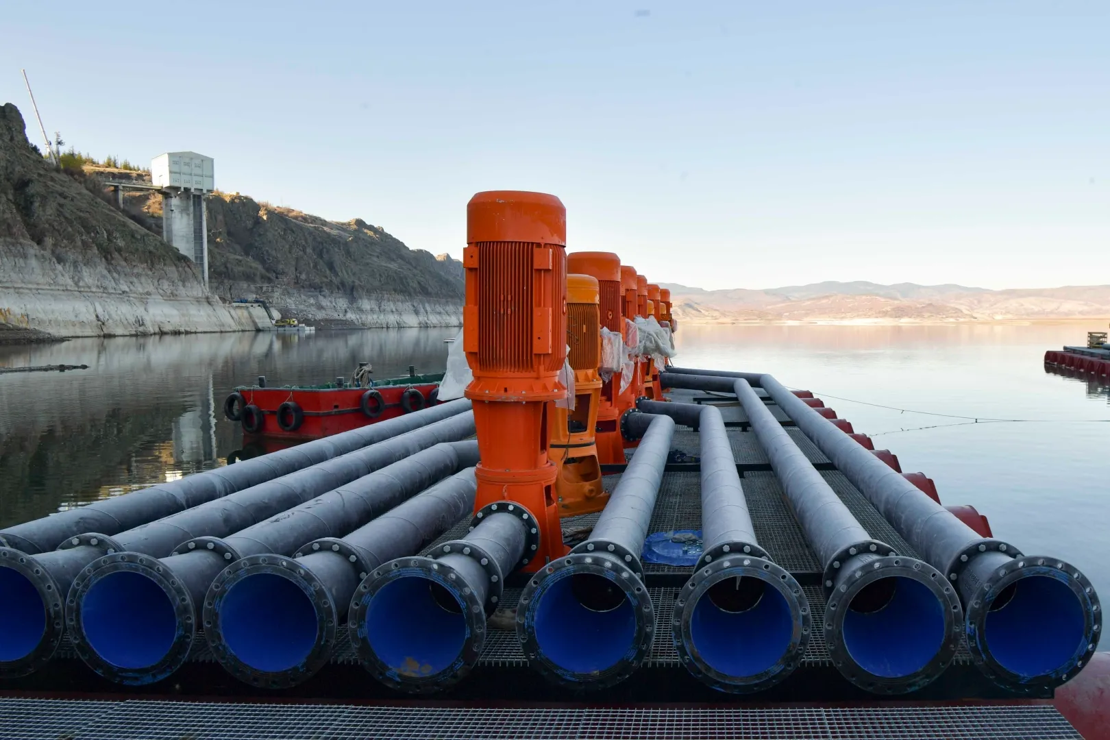 Suyun cazibeyle kanala aktarılması için yüzer platformların yardımıyla dikey milli pompalarla su alttan alınarak barajın üst kısmında bulunan su alma yapısının içerisine boşaltılıyor ve bu işlem sayesinde Başkent'e su ulaşıyor.