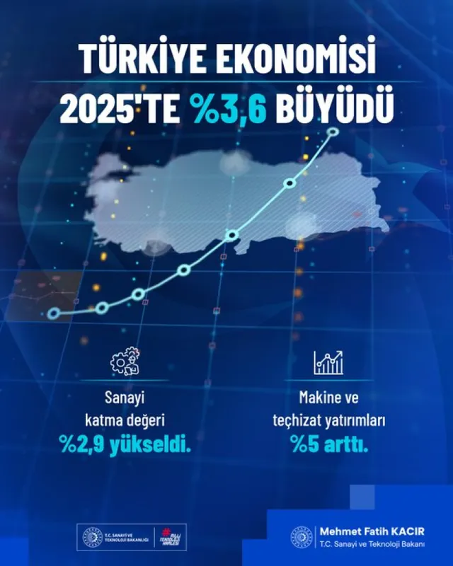 Sanayi ve Teknoloji Bakanı Mehmet Kacır, 2025 yılında yüzde 3,6 büyüyen Türkiye ekonomisinin sanayi üretiminde kaydettiği artışa dikkat çekerek, 2026'da sanayide yükselişin hızlanacağını açıkladı.