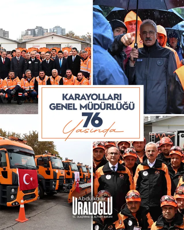 Ulaştırma ve Altyapı Bakanı Abdulkadir Uraloğlu, Karayolları Genel Müdürlüğü'nün 76'ncı kuruluş yıl dönümü dolayısıyla yayımladığı mesajda, teşkilatın Türkiye'nin kalkınmasındaki kritik rolüne dikkat çekti.