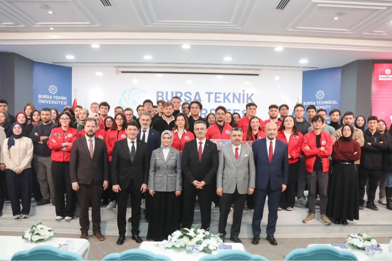 BURSA (İGFA) - Ulusal ve uluslararası yarışmalarda elde ettikleri başarılarla dikkat çeken Bursa Teknik Üniversitesi (BTÜ) öğrencileri, TEKNOFEST Teknoloji Yarışmaları'nda da her yıl önemli dereceler kazanmayı sürdürüyor. 2025 TEKNOFEST Teknoloji Yarışmaları'nda da pek çok kategoride finale kalma başarısı gösteren ve dereceler elde eden BTÜ öğrenci takımları, bu yıl Teknoloji Yarışmaları Koordinatörlüğü tarafından ilk kez düzenlenen "TEKNOFEST Yarışma Sürecini 5 Dakikada Anlat" etkinliğinde deneyimlerini paylaşmak üzere bir araya geldi. Mimar Sinan Yerleşkesi Turkuaz Salon'da gerçekleşen etkinliğe; BTÜ Rektörü Prof. Dr. Naci Çağlar, T3 Vakfı Yönetim Kurulu Başkanı ve Genel Müdürü Dr. Elvan Kuzucu Hıdır, Yıldırım Belediye Başkanı Oktay Yılmaz, Anadolu Aslanları İş Adamları Derneği (ASKON) Bursa Şube Başkanı Emre Yıldız, akademisyenler ve öğrenciler katıldı.