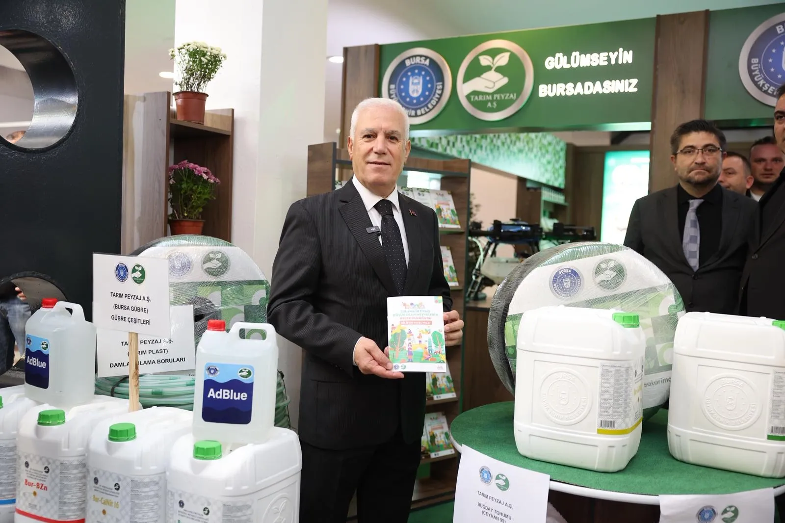 Bursa Büyükşehir Belediye Başkanı Mustafa Bozbey de AgroGreen Bursa Tarım Fuarı'nda üreticilerle sohbet ederek sergilenen makineleri yerinde inceledi.