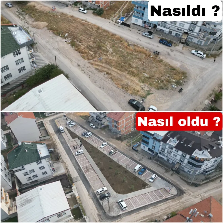 Bu kapsamda Yeni Mahalle Esinti Sokakta planlarda otopark olarak geçen ancak atıl halde bulunan alanda yapılan uygulamayla düzenli otopark oluşturuldu. Aynı zamanda otopark içerisinde bırakılan yeşil alanda 24 adet yetişkin formlarda fidan dikildi.