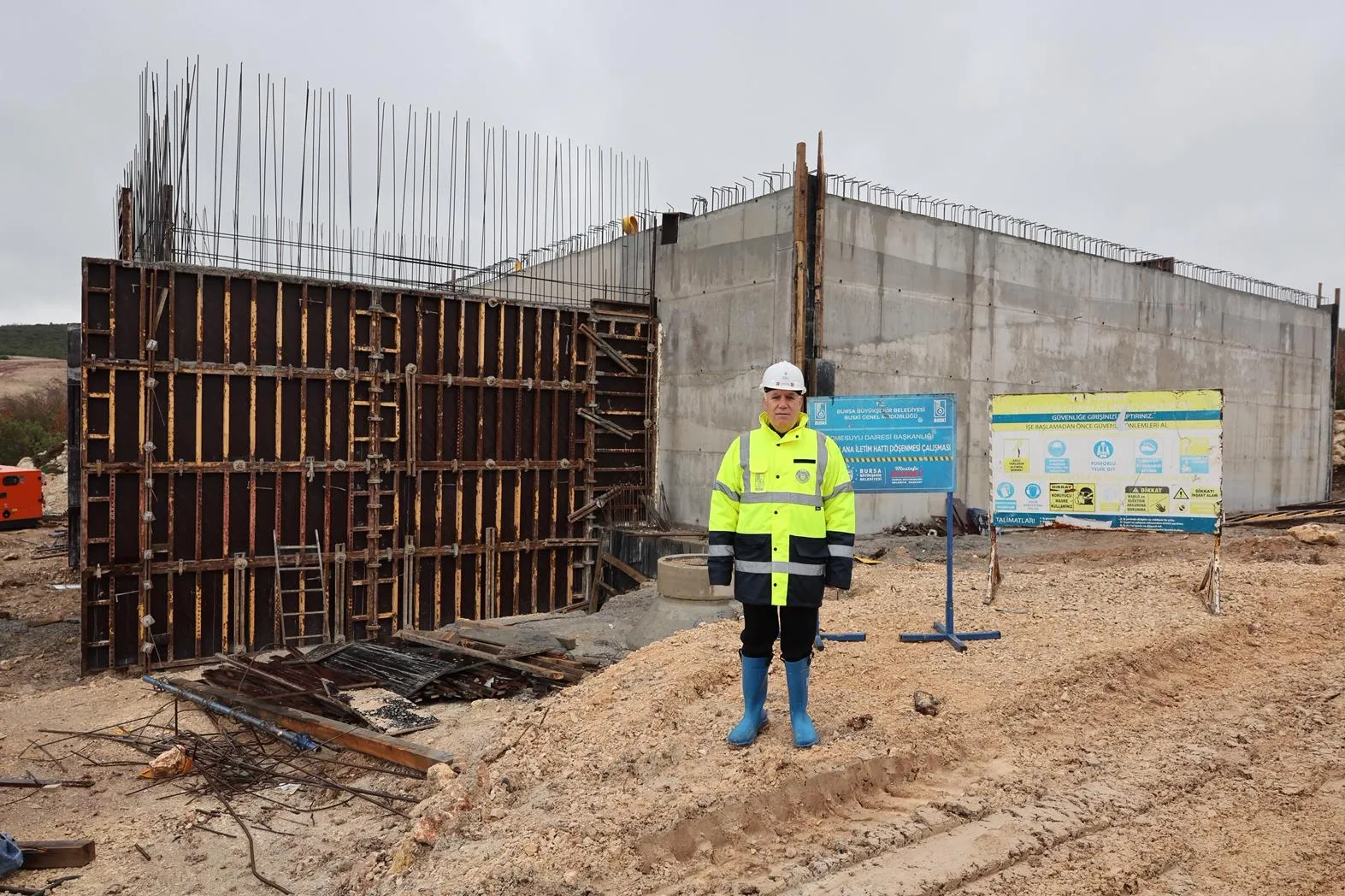 Bursa Büyükşehir Belediye Başkanı Mustafa Bozbey de inşaat alanını gezerek BUSKİ Genel Müdürü Mehmet Ercihan Subaşıoğlu ve BUSKİ yetkililerinden bilgi aldı.