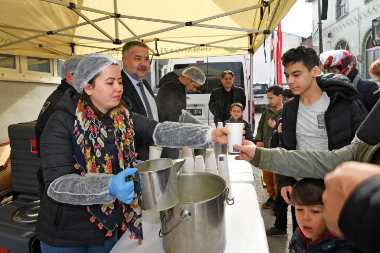 Cuma namazı sonrası Alemdar Camii'nde düzenlenen programda vatandaşlara sıcak çorba ikram edilerek, birlik ve beraberlik duyguları pekiştirildi. Osmangazi Belediyespor Başkanı Fatih Karayılan ile Osmangazi Belediyesi Meclis Üyesi Özge Kaya tarafından yapılan çorba ikramı, samimi bir atmosferde gerçekleşti.