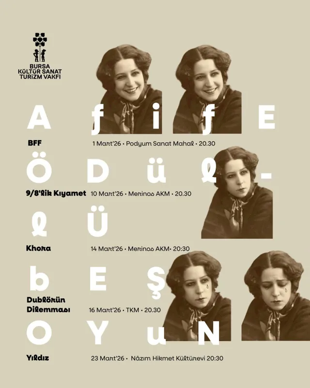 Bursa Büyükşehir Belediyesi, Türk tiyatrosunda iz bırakan Afife Jale'nin anısına Mart ayı boyunca 'Afife Tiyatro Günleri' düzenliyor.