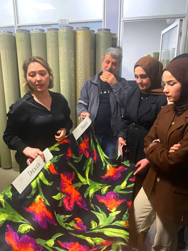 Öğrenciler ayrıca firmanın desen ve baskı uygulamalarını yerinde inceleyerek, desenin kumaş yapısıyla uyumu ve baskı tekniklerinin ürün performansına etkisi hakkında bilgi sahibi oldu. Ziyaret, modelist adaylarının tasarım ile üretim arasındaki bağı daha net kavramlarına katkı sağladı. Eğitim ile sektörü bir araya getiren bu atölye çalışması, öğrencilerin kumaşı yalnızca estetik bir unsur olarak değil; kalıp ve model geliştirme sürecinin temel yapı taşı olarak ele almalarına katkı sundu.