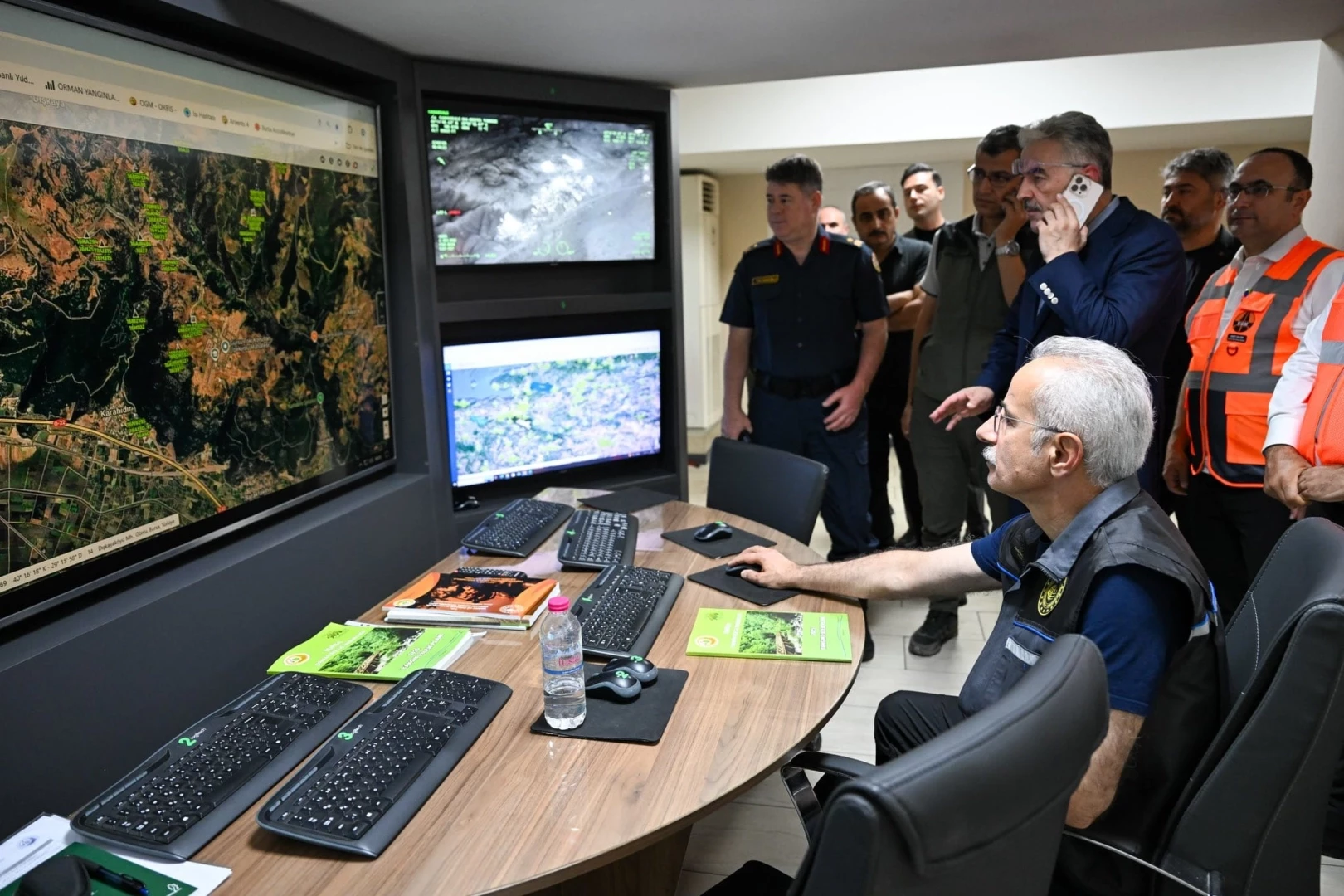 Bursa'da bulunan Ulaştırma ve Altyapı Bakanı Abdulkadir Uraloğlu, Bursa Valisi Erol Ayyıldız ile birlikte Yangın Harekât Merkezi'nde Orman Bölge Müdürü Erdal Şahan'dan bilgi aldı.