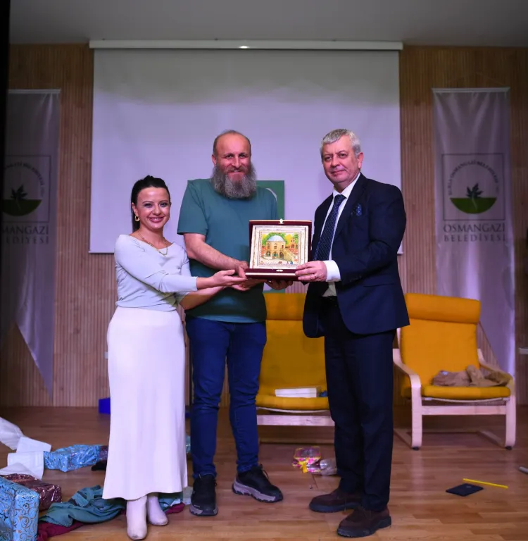 Etkinliğin sonunda Osmangazi Belediye Başkan Yardımcısı Mutlu Esendemir, Çetin Altay ve Özlem Karaaytu'ya emeklerinden dolayı teşekkür plaketi takdiminde bulundu.