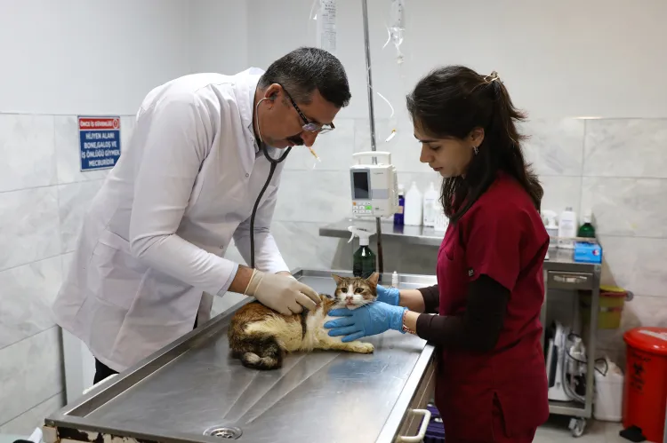 Veteriner İşleri Dairesi Başkanlığı ekipleri, kısa sürede olay yerine gelerek bitkin halde bulunan ve şok geçiren kediyi tedavi için Gümüştepe Hayvan Bakım Evi'ne götürdü.