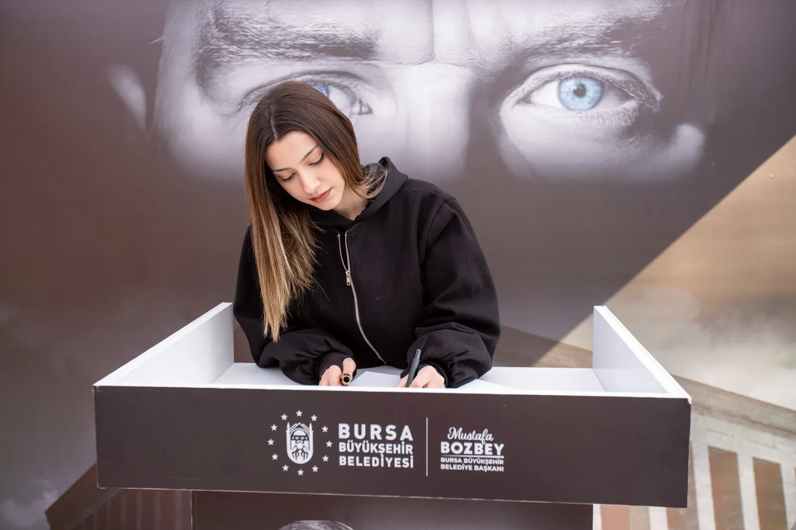 Cumhuriyetimizin kurucusu Ulu Önder Gazi Mustafa Kemal Atatürk'ün aramızdan ayrılışının 87. yıl dönümünde Bursa'da kalpler ve kalemler, Büyükşehir Belediyesi'nin projesi ile bir araya geliyor.