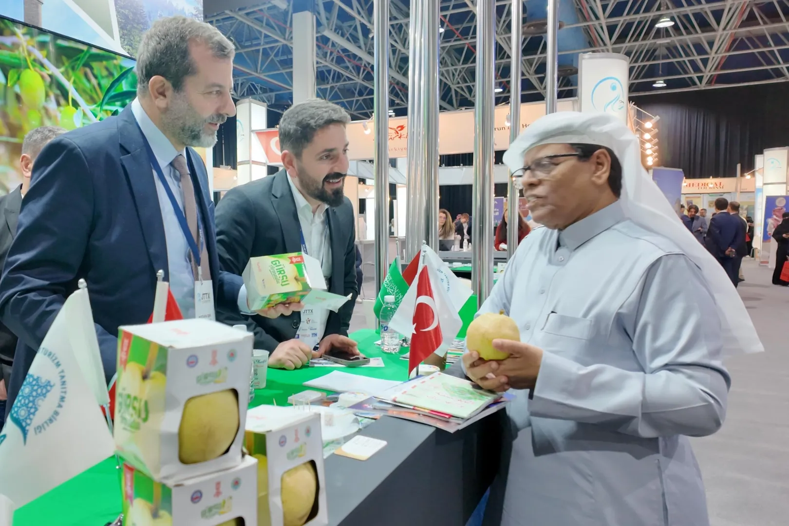 Cidde Uluslararası Fuar ve Kongre Merkezi'nde düzenlenen JTTX Cidde Uluslararası Turizm ve Seyahat Fuarı'ndaki Bursa standında misafirlere, yanında götürdüğü Gürsu'nun özel lezzetlerini tanıtan Gürsu Belediye Başkanı Mustafa Işık, fuar misafirlerinin ilgi odağı oldu.