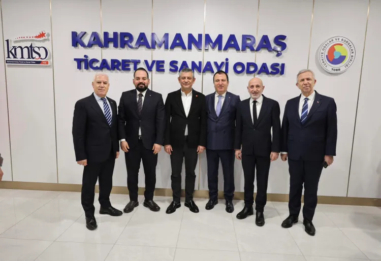 CHP Genel Başkanı Özgür Özel, Bursa Büyükşehir Belediye Başkanı Mustafa Bozbey ve beraberindekiler daha sonra Kahramanmaraş Ticaret ve Sanayi Odası'nı ziyaret etti.