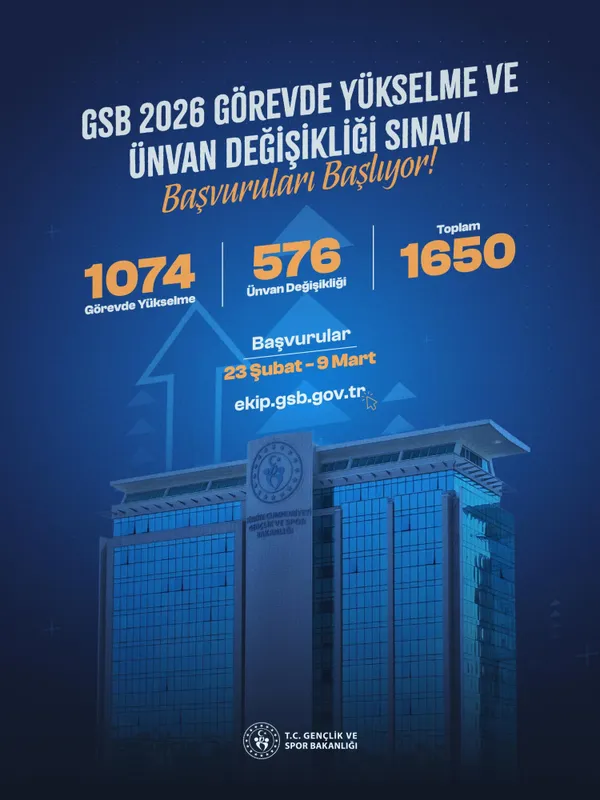 Gençlik ve Spor Bakanı Dr. Osman Aşkın Bak, bakanlığın merkez ve taşra teşkilatında görev yapan personel için "Görevde Yükselme ve Ünvan Değişikliği Sınavı" başvurularının başladığını duyurdu.