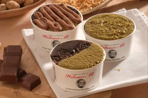 Sadece Türkiye'de 81 ile değil, ABD'den Katar'a, Avrupa ülkelerinden Dubai'ye kadar dondurmalı irmik helvasının farklı çeşitleriyle beğeniye sunan Helvacı Ali, Bursa'daki şubelerine süt helvası servisi de yapıyor.