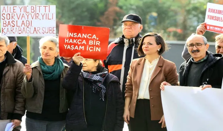 İzmir'de Karabağlar Demokrasi Platformu'nun çağrısıyla düzenlenen basın açıklamasında emekliler, artan hayat pahalılığına ve derinleşen geçim sıkıntısına karşı bir kez daha alanlara çıktı. "Gasp edilen haklarımızı geri almak için buradayız" sloganıyla yapılan açıklamaya Karabağlar Belediye Başkanı Helil Kınay da destek verdi.