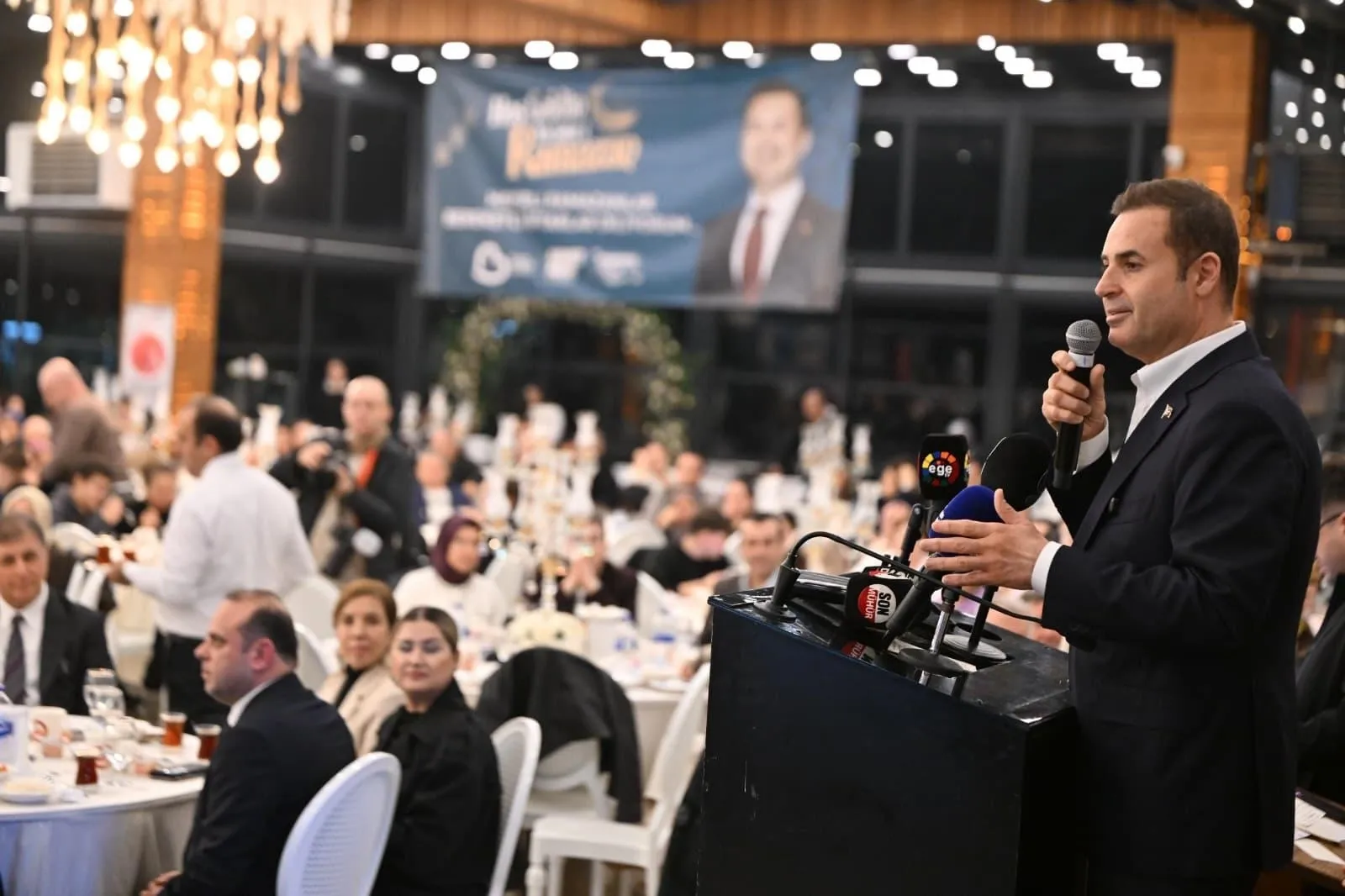 İzmir'de düzenlenen iftar programına Balıkesir Büyükşehir Belediye Başkanı Ahmet Akın ve eşi Arbil Akın'ın yanı sıra CHP Cumhurbaşkanlığı Aday Ofisi Aile ve Sosyal Hizmetler Politika Kurulu Başkanı Aylin Nazlıaka, Demokrat Parti İzmir Milletvekili Haydar Altıntaş, İzmir Büyükşehir Belediye Başkanı Cemil Tugay, İzmir Vali Yardımcısı İsmail Çorumluoğlu, Karesi Belediye Başkanı Mesut Akbıyık, Altıeylül Belediye Başkanı Hakan Şehirli, Manyas Belediye Başkanı Ahmet Duru, Savaştepe Belediye Başkanı Ali Koyuncu, Dursunbey Belediye Başkanı Ramazan Bahçavan, Balıkesirliler Derneği Onursal Başkanı Mehmet Çalışkan, Bayraklı Belediye Başkanı İrfan Önal, Karabağlar Belediye Başkanı Helil Kınay, davetliler ve basın mensupları katıldı.