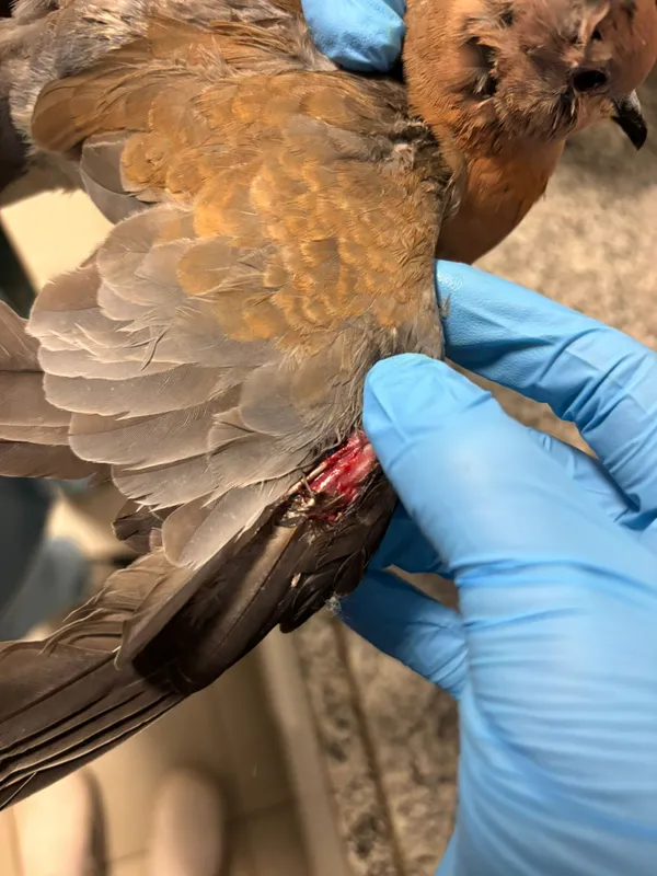 Güvercinin sağ kanadında açık yara ve sağ göz çevresinde travmatik bulgular tespit edildi. Kırık olmadığı saptanan güvercinin yaraları temizlenerek tedavisi yapıldı. Güvercin sağlığına kavuştuktan sonra Doğa Koruma ve Milli Parklar İzmir Şube Müdürlüğü'ne teslim edilecek.