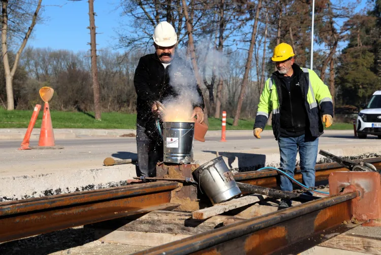Kocaeli Büyükşehir Belediyesi, raylı sistem ağını bu kez "Kartepe Tramvay Hattı" ile güçlendiriyor. Kenti demir ağlarla ören Büyükşehir, bu hatta döşenen raylarda kaynak işlemlerine başladı.