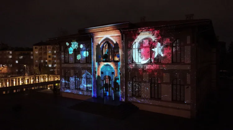 Konya Büyükşehir Belediyesi tarafından Taş Bina'da video mapping gösterisi gerçekleştiriliyor.