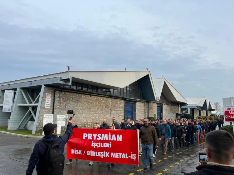 BURSA (İGFA) - MESS Grup Toplu İş Sözleşmesi (TİS) sürecine ilişkin sendikanın 24 Aralık'ta açıkladığı yeni eylem kararları kapsamında Mudanya'da yürüyüş ve kitlesel basın açıklaması düzenlendi. Mudanya'da örgütlü olunan Türk Prysmian Fabrikası'nda saat 16.00 vardiyası çıkışında bir araya gelen sendikalı işçiler, fabrika önünden Bursa asfaltını takip ederek Mudanya İskele Meydanı'na yürüdü.