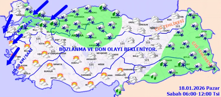 Yağışların, Kastamonu ve Samsun çevrelerinde yer yer kuvvetli olması bekleniyor. İç ve doğu kesimlerde buzlanma ve don olayı ile birlikte pus ve yer yer sis bekleniyor. Doğu Karadeniz'in iç kesimlerinin yüksekleri ile Doğu Anadolu'nun doğusunda yüksek kar örtüsüne sahip eğimli kesimlerinde çığ tehlikesi bulunmaktadır.