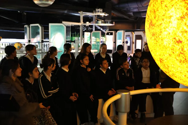 BURSA (İGFA) - Rehberler eşliğinde gerçekleştirilen gezi kapsamında öğrenciler, GUHEM bünyesinde yer alan uzay, havacılık ve bilim temalı sergi alanlarını gezerek bilgiler edindi.