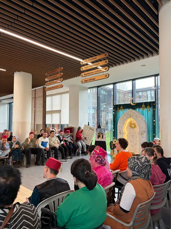 Seçkin Bayramoğlu'nun meddah gösterisi ve Hacivat-Karagöz canlandırmasıyla renklenen programda katılımcılar keyifli anlar yaşarken, Engelsiz Hobi Atölyelerinde Ramazan'ın manevi atmosferi coşkuyla yaşandı.