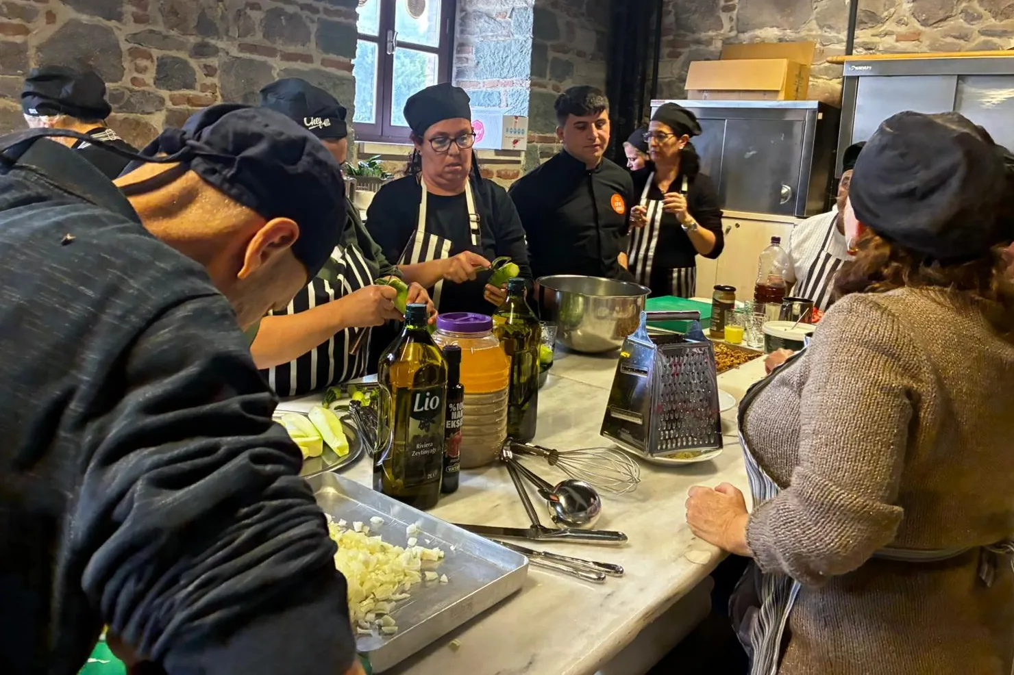 İZMİR (İGFA) - İzmir Büyükşehir Belediyesi Meslek Fabrikası'nın sağır ve işitme engelli bireylere yönelik pastacı çıraklığı kursundan mezun olan kursiyerler, ünlü şef Rıfat Yurttaş ile keyifli bir atölyede bir araya geldi. Çeşme'de restoranı bulunan ve sosyal medyada paylaştığı tariflerle geniş bir takipçi kitlesine ulaşan Yurttaş, kursiyerlerle birlikte Ege mutfağının karakteristik meze ve zeytinyağlılarını hazırladı.