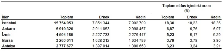 İSTANBUL 15,7 MİLYONLA İLK SIRADA