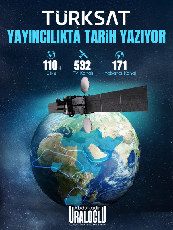 Bakan Uraloğlu, "Türksat uydularımız sayesinde bugün 110'u aşkın ülkede milyarlarca izleyiciye ulaşıyoruz" dedi. İlk yerli haberleşme uydumuz Türksat 6A'nın sağladığı teknolojik avantaj sayesinde Türkiye'nin dijital yayınlarını yedi kıtaya en yüksek kalitede taşıdıklarını vurguladı.