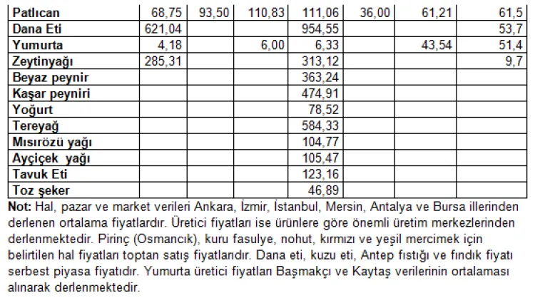 Üretici fiyatlarında ise 33 ürünün 18'inde artış, 7'sinde düşüş kaydedildi; marul üreticide yüzde 49,9 artarken, karnabahar yüzde 29 değer kaybetti.