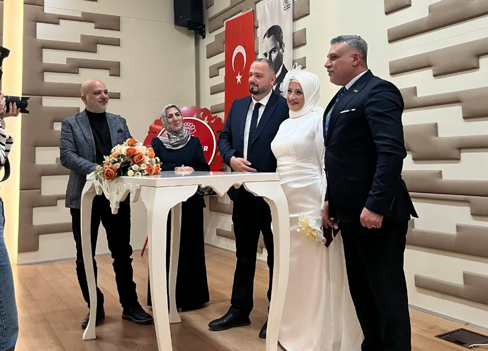 Nilüfer Belediyesi Nikâh Salonu’nda gerçekleştirilen törene, Enver Türkoğlu, Fatih Düzenli ve il yönetim kurulu üyelerinin yanı sıra çok sayıda davetli katıldı.