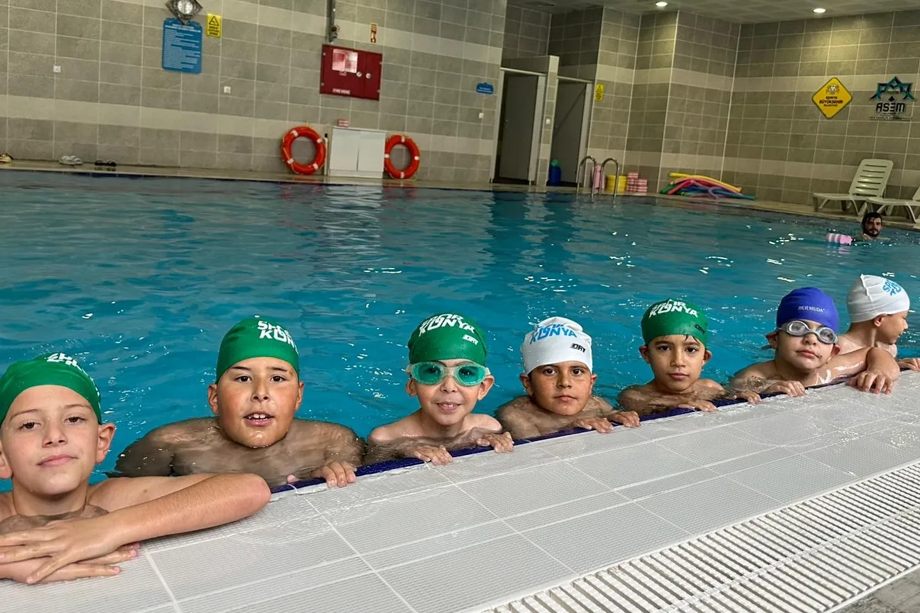 Konya Büyükşehir Belediyesi’nin “Yüzme Bilmeyen Kalmasın” projesi 20 ilçede devam ediyor. Proje kapsamında öğrenciler, hafta içi ders saatinde Büyükşehir Belediyesi tarafından servislerle okuldan alınıp eğitimleri bittikten sonra yeniden okullarına bırakılıyor.