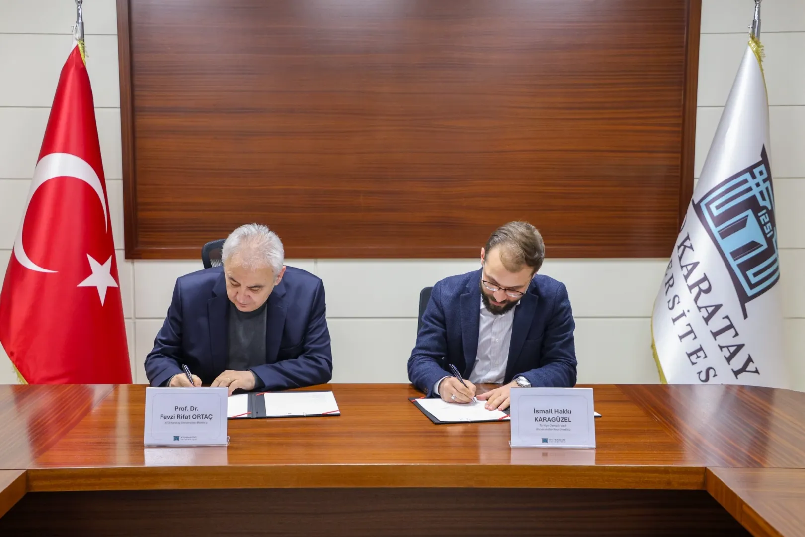 KONYA (İGFA) - KTO Karatay Üniversitesi ile TÜGVA arasında İhtisas Akademisi İş Birliği Protokolü imzalandı. Öğrencilere akademik eğitimler sunulması, sosyal bilinçlerinin geliştirilmesi, disiplinler arası etkileşimin artırılması ve nitelikli akademik çalışmalarla literatüre katkı sağlanması hedefiyle imzalanan protokol törenine, KTO Karatay Üniversitesi Rektörü Prof. Dr. Fevzi Rifat Ortaç ve TÜGVA Üniversiteler Koordinatörü İsmail Hakkı Karagüzel katıldı.
