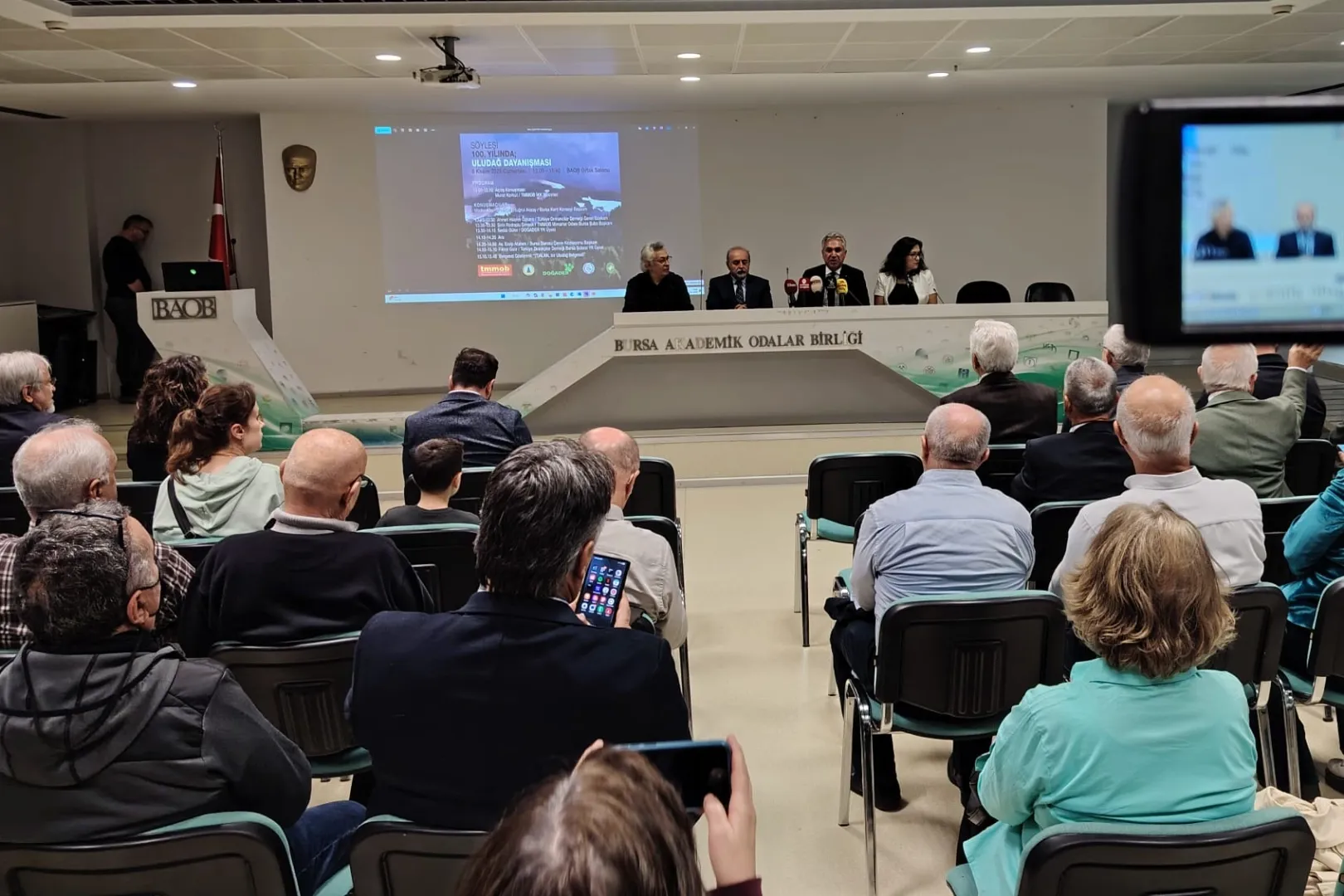 BURSA (İGFA) - BAOB Ortak Salon’da düzenlenen “100. Yılında Uludağ Dayanışması” söyleşisi, TMMOB Bursa İl Koordinasyon Kurulu Sekreteri Murat Korkut’un açılış konuşmasıyla başladı. Korkut, Uludağ’ın yalnızca yüksekliğiyle değil, doğası, tarihi ve kültürel değerleriyle “Ulu” olduğunu vurgulayarak, doğa ve kültürün korunmasının önemine dikkat çekti.