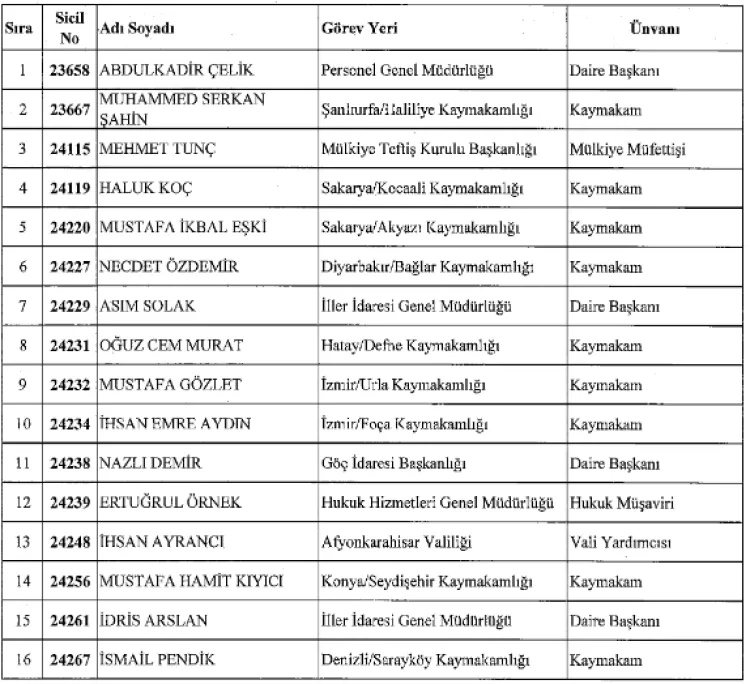 Buna göre aralarında 9'u Kaymakam olan toplamda 16 Mülki İdare Amiri birinci sınıfa yükseltildi.