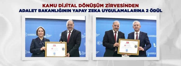 Adalet Bakanlığı, Yapay Zekâ Destekli Evrak Dağıtım Servisi (YEDES) ve Adli Sicil Bilgi Sistemi Projesi ile Kamu Dijital Dönüşüm Zirvesi'nde ödüle layık görüldü.