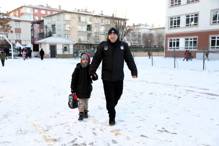 Zabıta Müdürlüğü personeli de sahada görev alarak, çocukların okul giriş ve çıkış saatlerinde güvenli şekilde karşıdan karşıya geçmelerini sağlıyor.