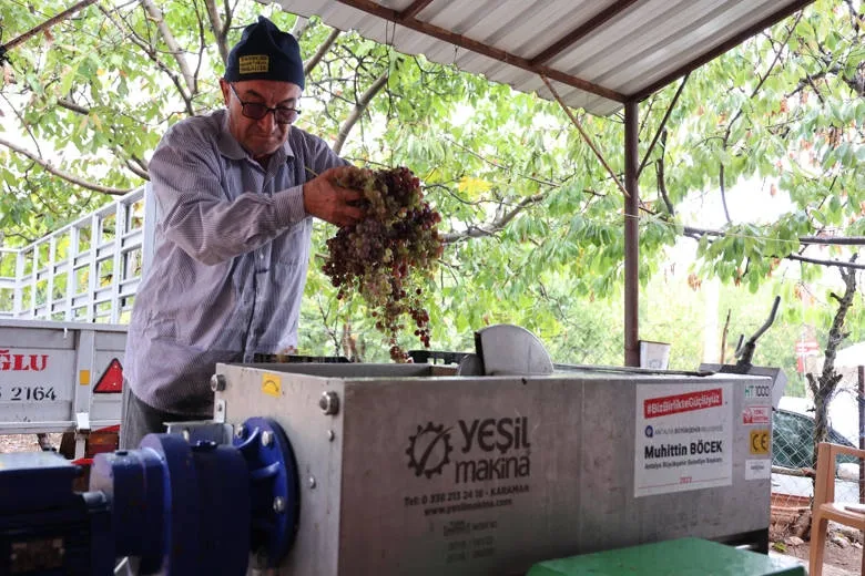 Elmalı Yuva Mahallesinde üzüm sıkma makinesini kullanan Mahmut Karakaya isimli üretici, Büyükşehir Belediyesi'nin sağladığı hibe destekleri için memnuniyetini şu sözlerle dile getirdi: "Emekli olduktan sonra Yuva mahallemizde bağ bahçe işleri ile uğraşmaya başladım.