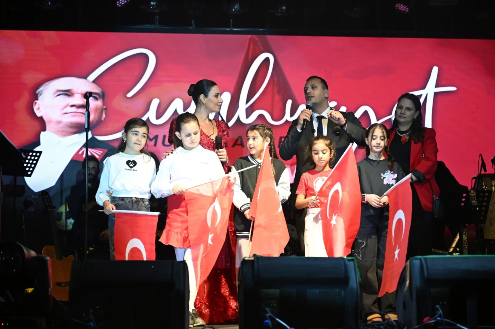 "Atatürk'ün bize armağan ettiği en büyük bayram. Bugün özgür bir Türk kadını olarak türkülerimi bu meydanda söylüyorsam Atatürk sayesinde. Ona ve onunla birlikte bu Cumhuriyeti kuranlara minnettarım. En büyük gurur yaşadığım konserler 29 Ekim'de çıktıklarımdır. Atatürk bu ülkenin kurucu lideridir ve bunu kimse değiştiremez. Ne mutlu Bornova'ya böyle kıymetli bir başkanı var. Umutsunuz, ışıksınız. Teşekkür ediyorum."