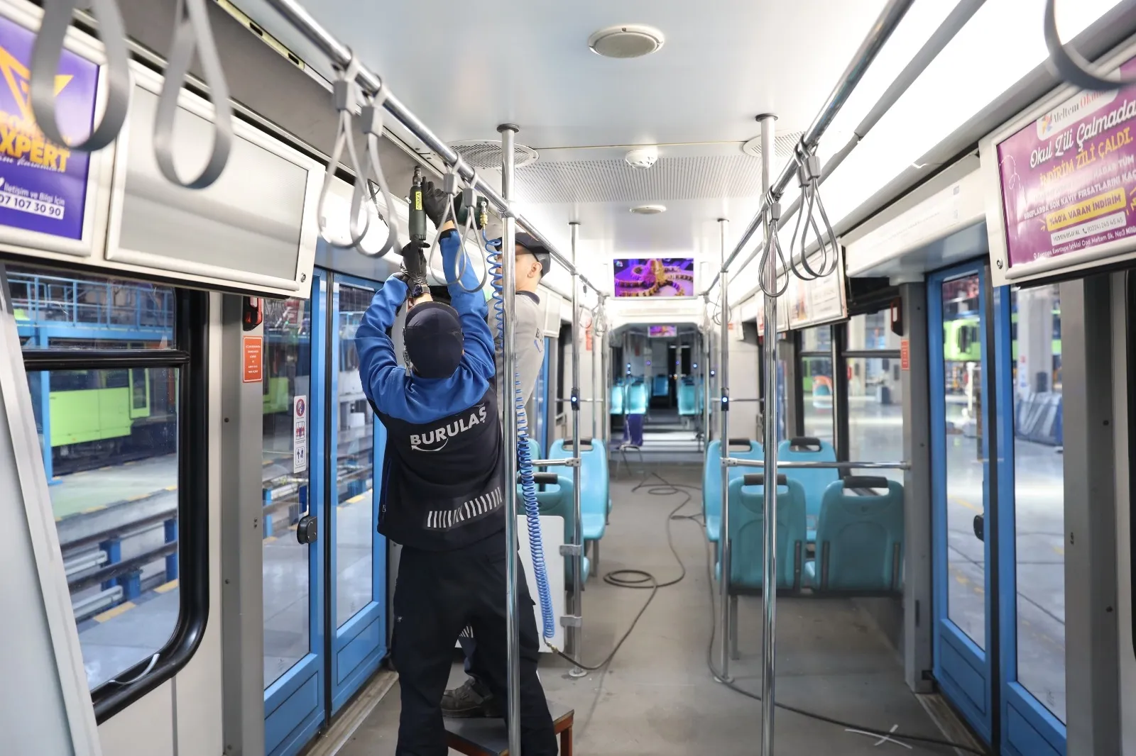 BURSA (İGFA) - Toplu taşıma hizmetlerini daha verimli ve sürdürülebilir hale getirmek için bakım ve onarım çalışmalarını kendi bünyesinde yürüten Büyükşehir Belediyesi'nin ulaşım şirketi BURULAŞ, tasarruf tedbirleri kapsamında araçlardaki dönüşümü de sağlıyor.
