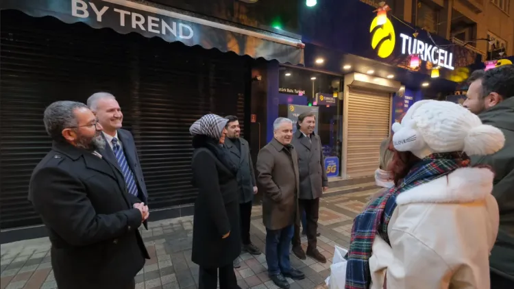 BURSA (İGFA) - Bursa'da İnegöl'de protokol üyeleri yeni yıla sahada çalışan kamu görevlileriyle birlikte girdi. AK Parti Bursa Milletvekili Ayhan Salman, Belediye Başkanı Alper Taban, AK Parti İnegöl İlçe Başkanı Mustafa Durmuş ile AK partili yöneticilerin yer aldığı heyet, yıl başı gecesi görevli olan kamu personelleri ile işyerlerinde vatandaşlara hizmet veren esnafları ziyaret etti.