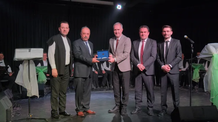 Konuşmaların ardından Mehter Derneği Başkanı Mehmet Semiz ile Koro Şefi Cem Taşkıner'e gecenin anısına Belediye Başkanı Alper Taban tarafından hediye takdim edildi.