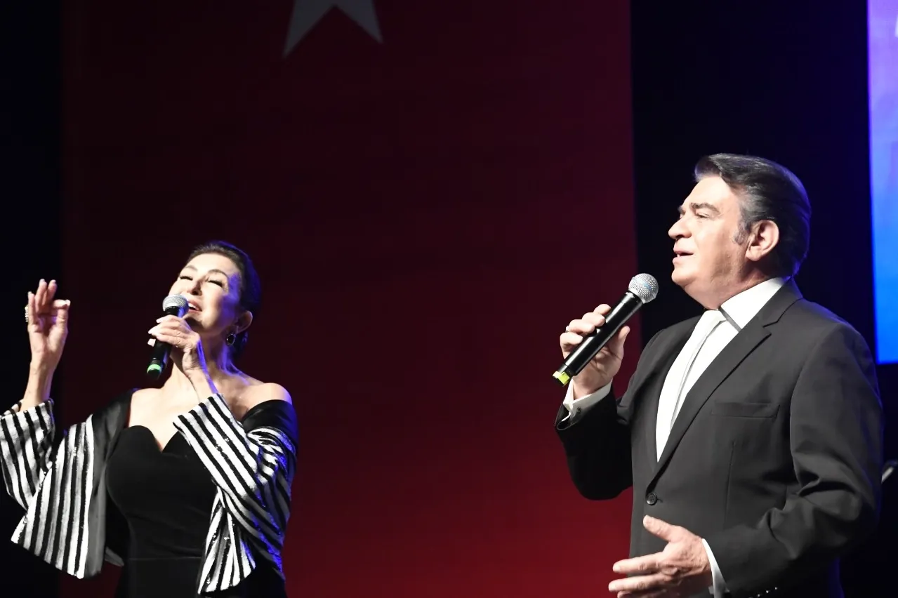 Gecenin sonunda Başkan Aydın, Sanatçılar Yıldırım Bekçi ve Melihat Gülses ile Zeki Müren Güzel Sanatlar Lisesi öğrencilerine teşekkür çiçeği verdi.