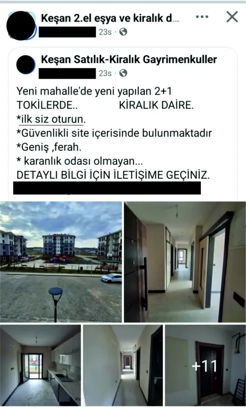 Konut sahibi bir vatandaşın, dairesini teslim alır almaz kiralık ilanı vermesi kamuoyunda tartışma oluşturdu. Sosyal medyada paylaşılan ilanda, yeni yerleşim alanındaki 2+1 daire için "ilk siz oturun", "güvenlikli site", "geniş ve ferah" gibi ifadelerin kullanılması dikkat çekti.