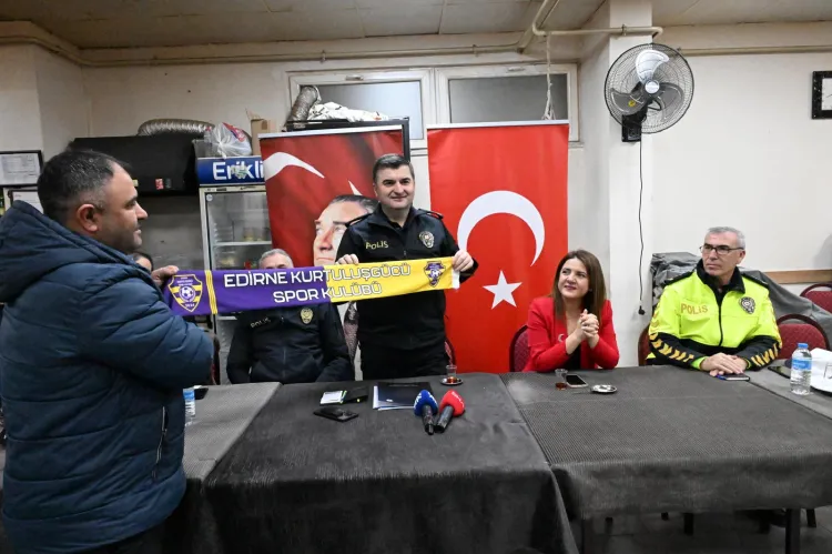 Huzur toplantısında Müdür Ayhan'a, Edirne KurtuluşGücü Spor Kulübü atkısı da hediye edildi.