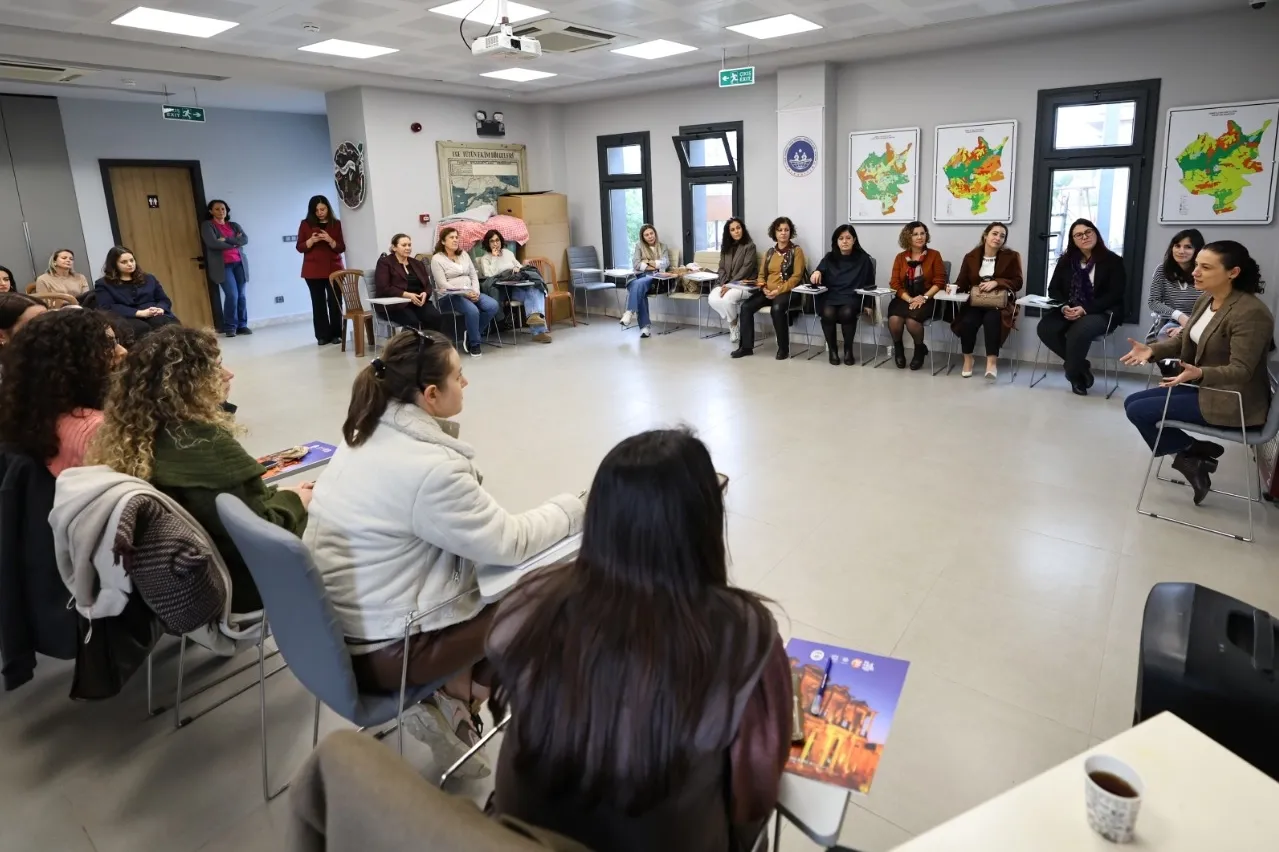 İZMİR (İGFA) - Efes Selçuk Belediyesi, "İzmir'de Kadına Yönelik Şiddetle Mücadelede İş Birliğinin Artırılması" toplantı dizisinin 22'ncisine Efes Tarlası Yaşam Köyü'nde ev sahipliği yaptı. Etkinliğe, İzmir'in çeşitli ilçe belediyelerinde kadın ve aile odaklı çalışmalar yürüten birimlerde görev yapan 35 kadın ile Efes Selçuk Belediyesi Kadın ve Aile Hizmetleri Müdürlüğü çalışanları katıldı.