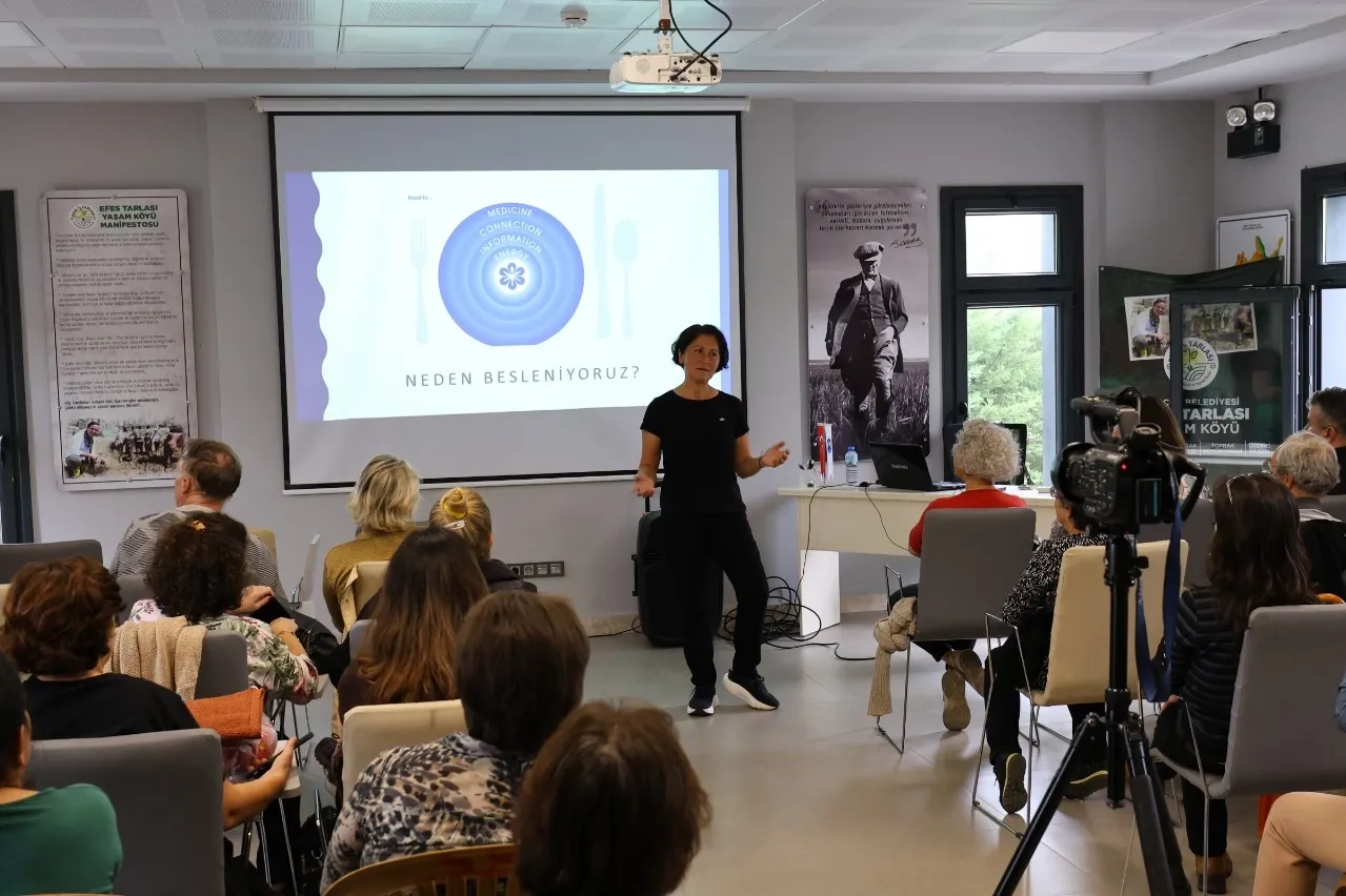 Efes Selçuk Belediyesi'nin ev sahipliğinde, Karaot Yerel Tohum Derneği iş birliği ile Prof. Dr. Nazan Uysal Harzadın'ın konuşmacı olarak katıldığı "Temiz Gıdalarla Fonksiyonel Beslenme" söyleşisi, Efes Tarlası Yaşam Köyü'nde yoğun katılımla gerçekleşti.