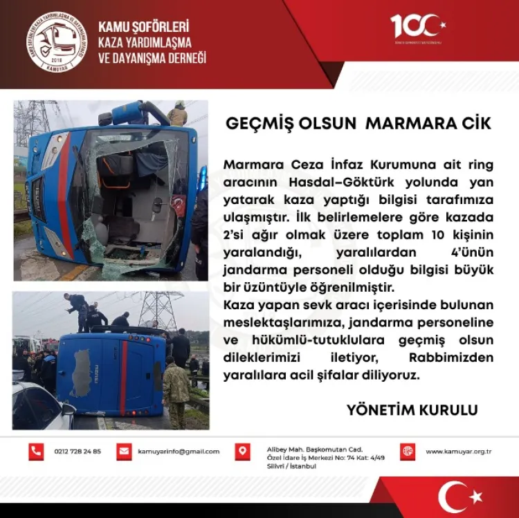 Yaşanan kaza ile ilgili bir 'geçmiş olsun' mesajı da Kamu Şoförleri Kaza Yardımlaşma ve Dayanışma Derneği'nden geldi.