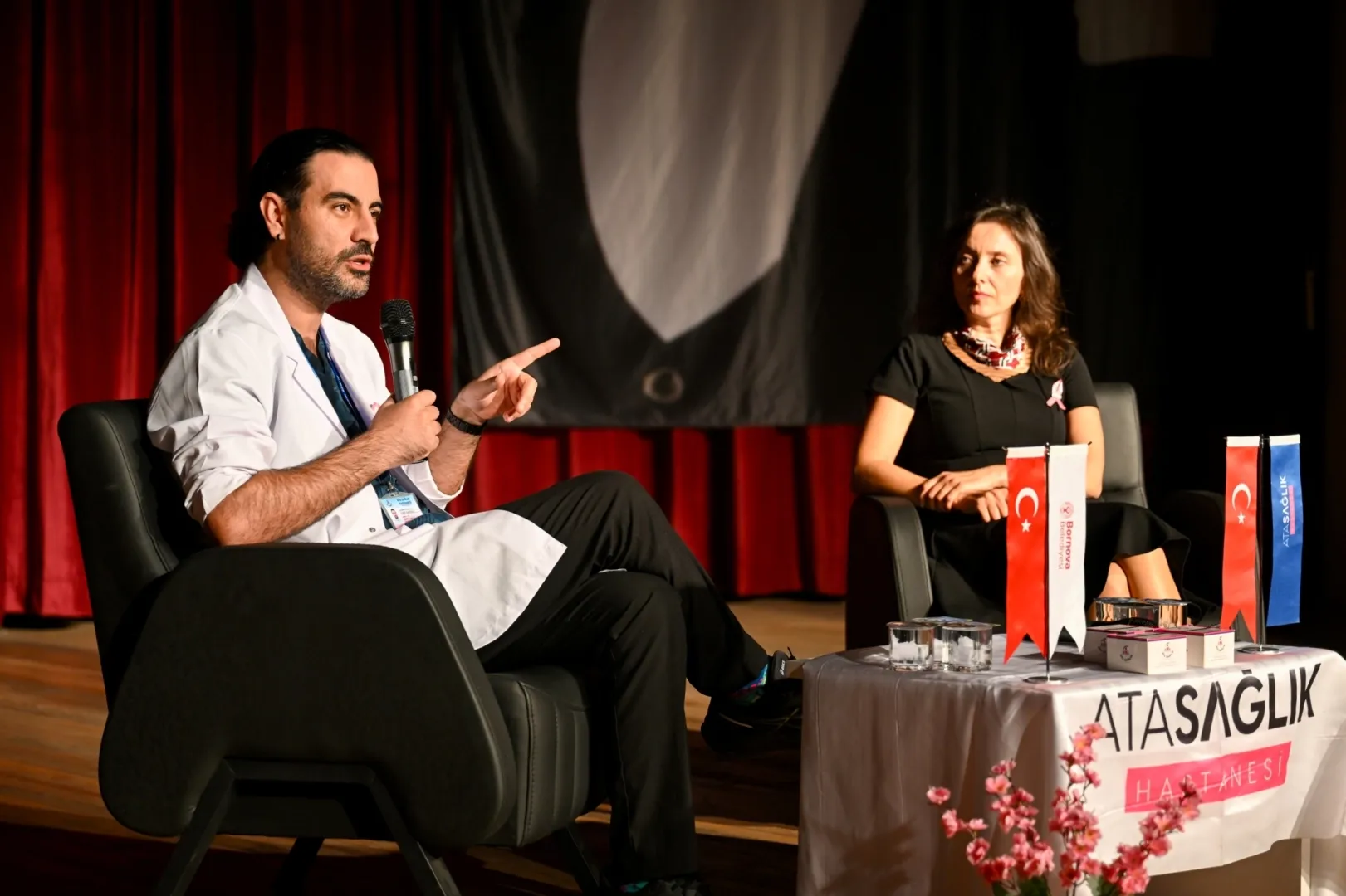 İZMİR (İGFA) - Bornova Belediyesi, Özel Ata Sağlık Hastanesi ile ortaklaşa düzenlediği "Meme Kanseri Farkındalık Paneli", Altındağ Atatürk Kültür Merkezi Yıldız Kenter Sahnesi'nde gerçekleştirildi. Panelde Genel Cerrahi Uzmanı Op. Dr. Utku Tanoğlu ve Kadın Hastalıkları ve Doğum Uzmanı Op. Dr. Gökben Yüksel konuşmacı olarak yer aldı. CHP Kadın Kolları MYK Üyesi Rahşan Nazlıoğlu da panele katılarak Bornova Belediyesi'nin farkındalık çalışmasına destek verdi.